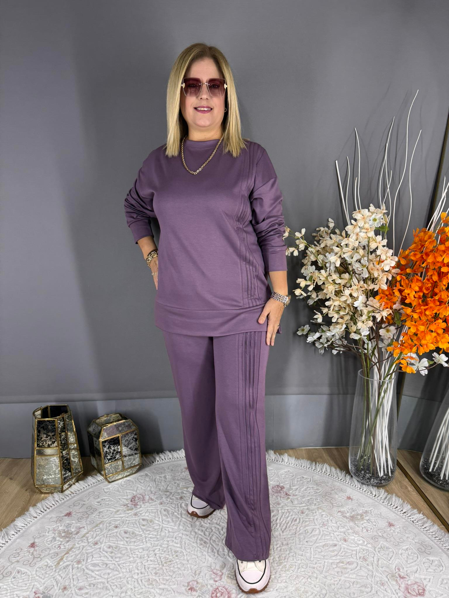 EYZ708 MOR OYSHO KUMAŞ ÖN PİLE DETAYLI EŞOFMAN TAKIM