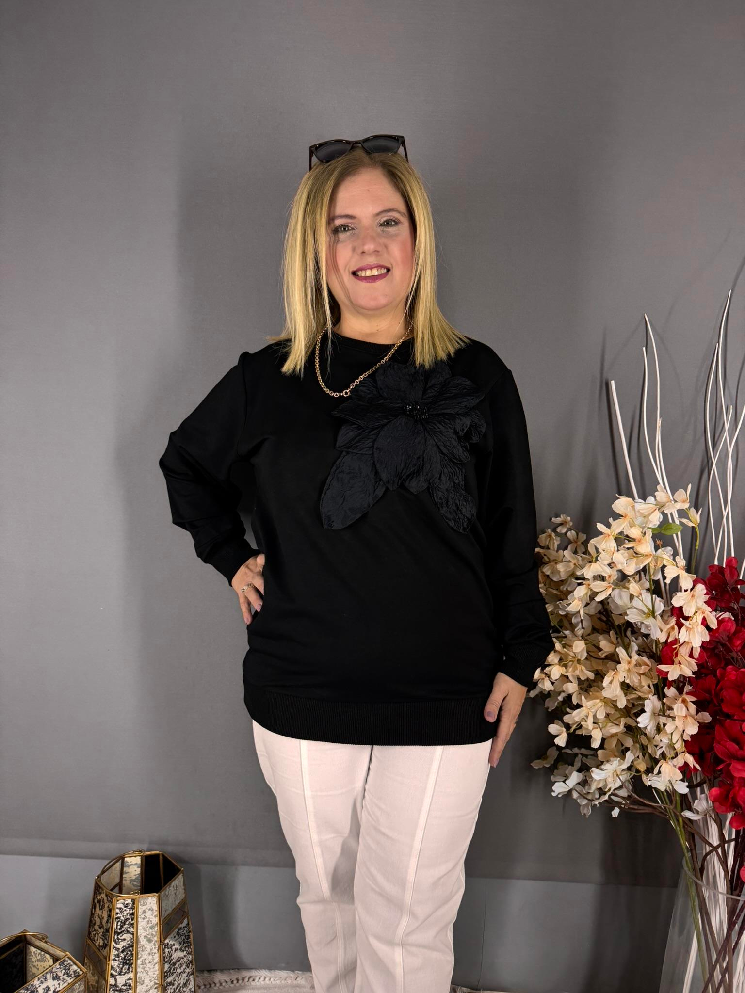 EYZ722 SİYAH ÇİCEK APLİKELİ SWEATSHİRT