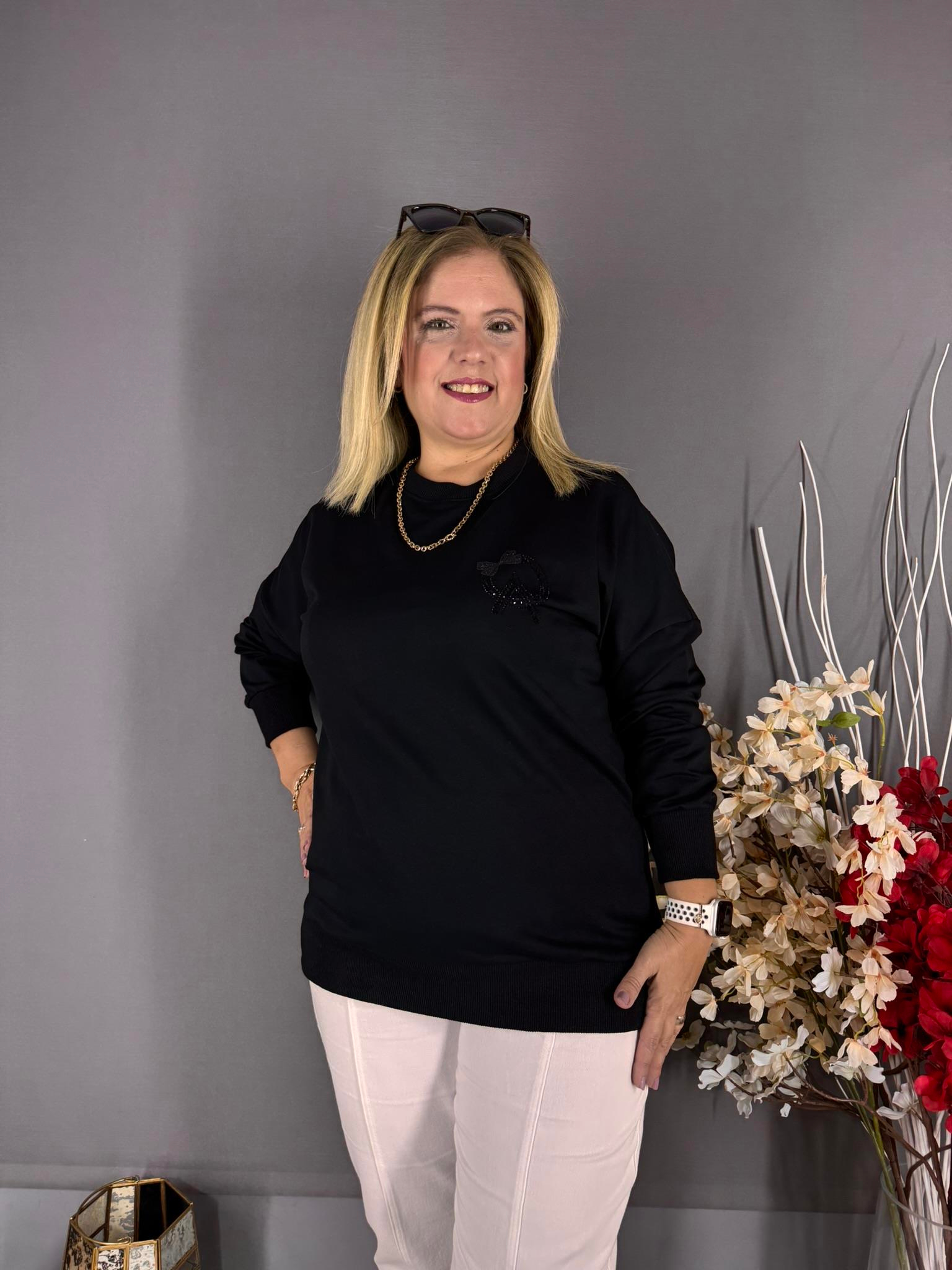 EYZ723 SİYAH TAŞ İŞLEMELİ ARKA TÜL SWEATSHİRT
