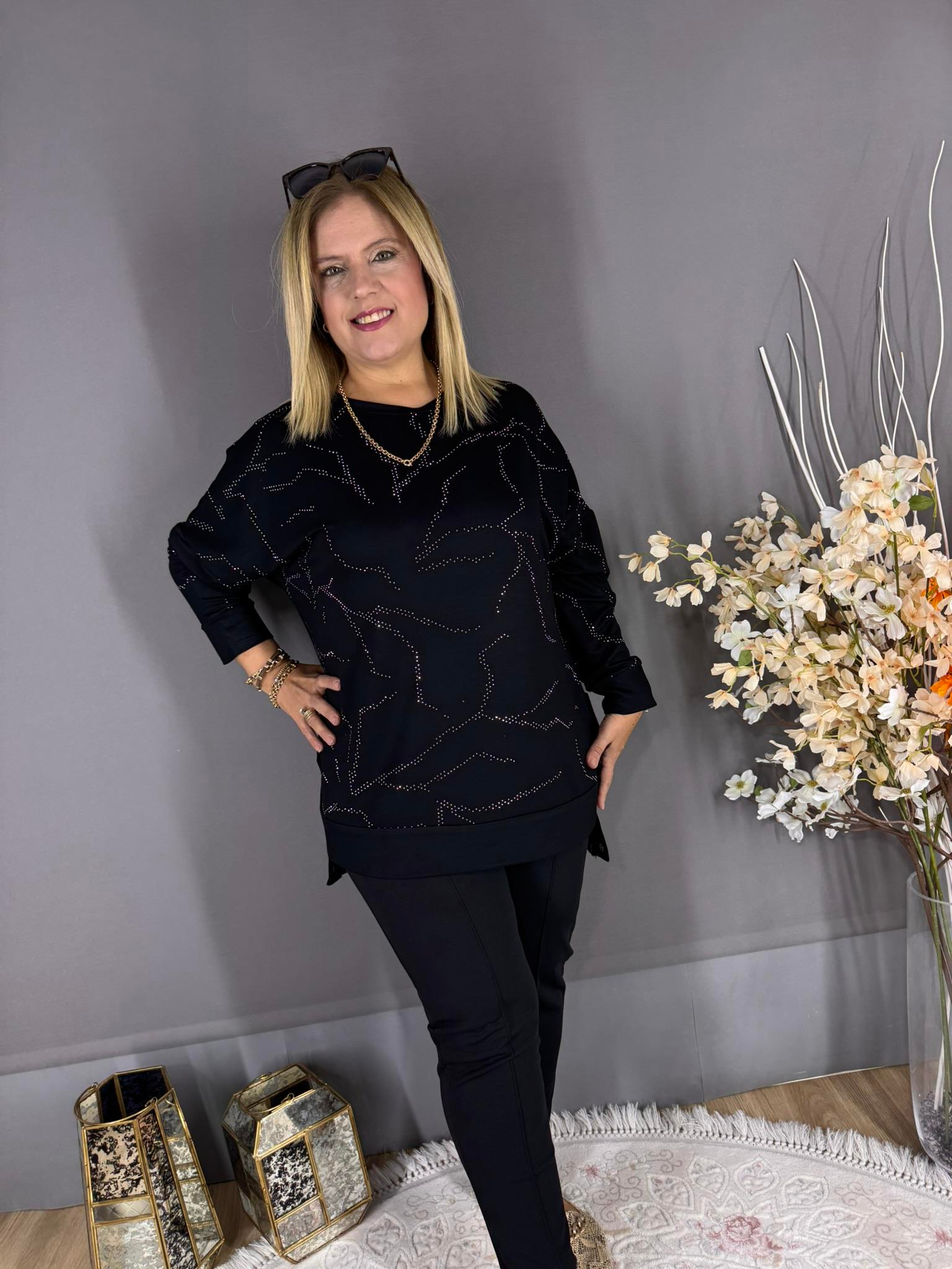 EYZ707 SİYAH ÖN TAŞLI YAN ÇITÇITLI TUNİK SWEAT